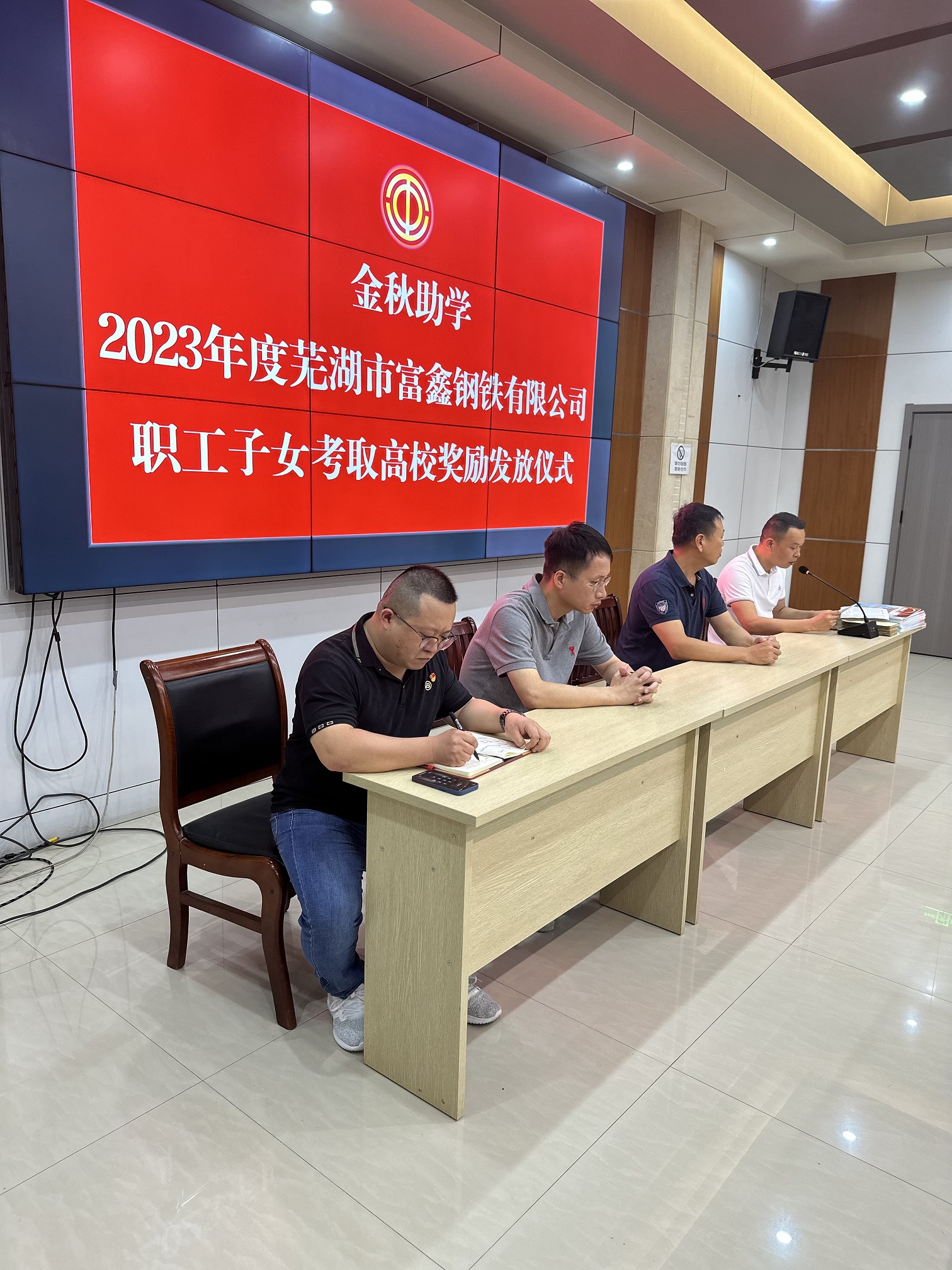 金秋助學。蕪湖市富鑫鋼鐵有限公司為2023年度考取高校的14名職工子女每人發(fā)放2000元助學資金。經(jīng)統(tǒng)計,自公司職工子女...